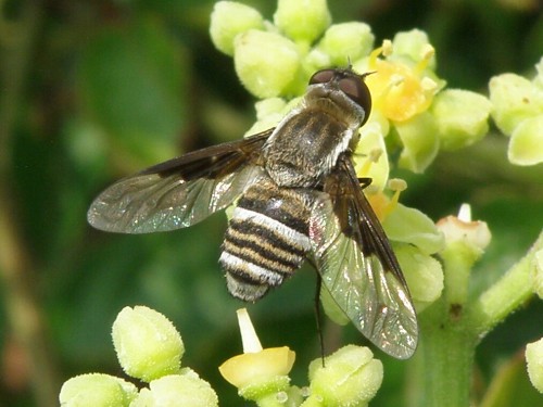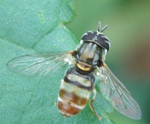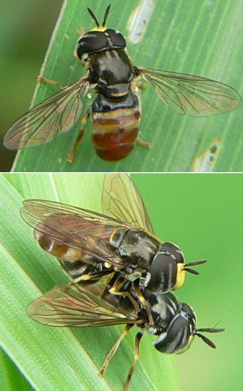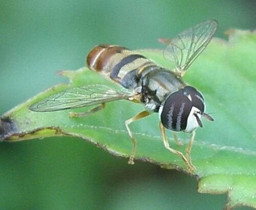 細いので蜂か?アブかと思いましたが、モモブトが特徴のハエだったのですね? ありがとうございました。m(__)m |
