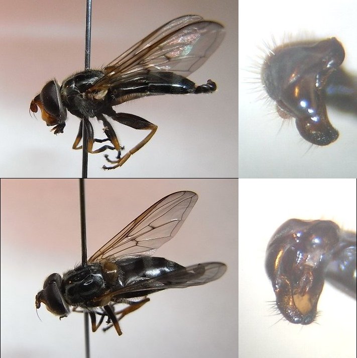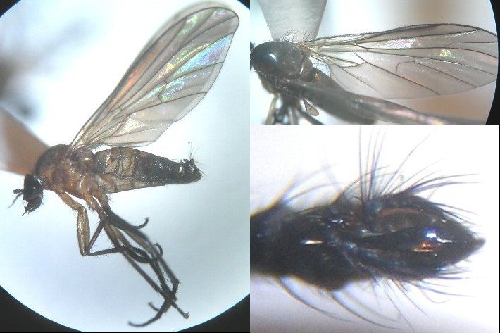 こんちは。[ No.4527 ]のアノニモミイアのコメントに出てくる『複眼が赤みを帯びるHilaraは日本にこのほかの種群で数種あります』とされた種の仲間ではないかと思います。 ゲニの剛毛が非常に長いのが特徴的でした。 7月初めに 埼玉県の山地(alt1200m程度)でライトトラップに来ました。 『新潟県のオドリバエ』にHilara tricolorという記述を見つけましたが、決め手がありませんでした。 このあたりの種は、どの程度の解明度なのでしょうか? ある程度 種に近づけるものでしょうか? ヒントなどご教示いただけましたら幸甚です。