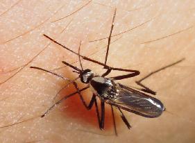 上の蚊は胸部の模様からすると、シロカタヤブカAedes nipponicus だと思いますが、写真情報のみによる同定は参考程度とお考えください。