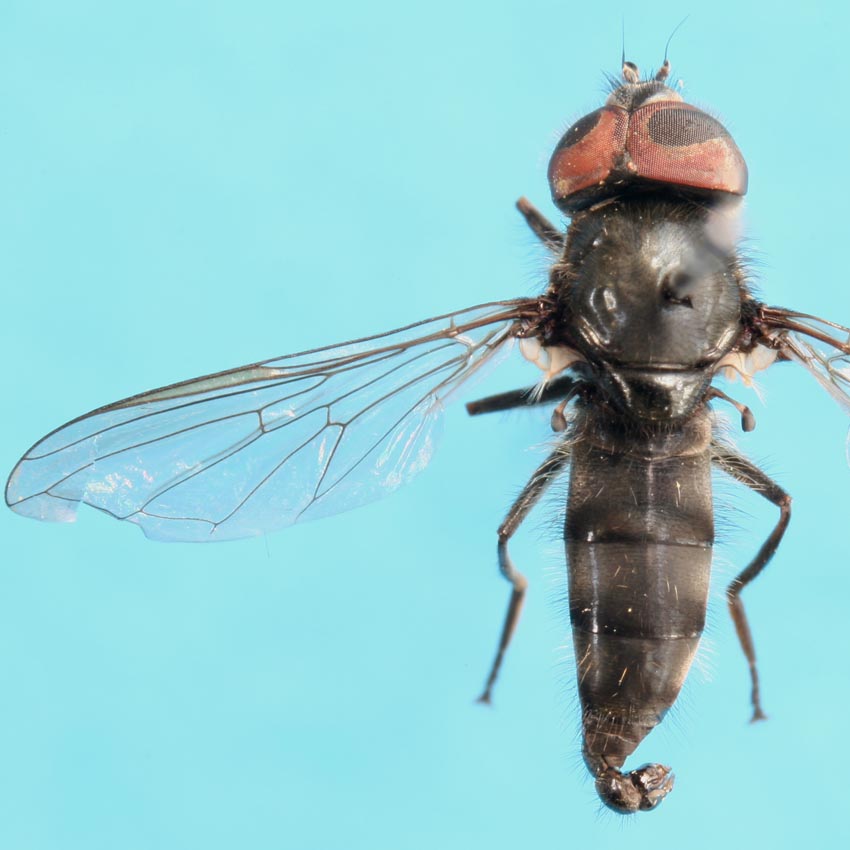 1.双翅目(ハエ目)の同定は,外観の画像でおおよその見当が付く蝶や蛾,あるいは甲虫類などとは違って,翅にある翅脈の細かな走り具合(翅脈相)や,体に生じている毛(刺毛,剛毛),触角の細かな特徴などを顕微鏡で観察して,その形態学的形質を把握しないと,正確を期すことはできません.