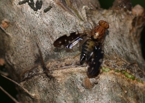 同僚が草木染めのためにスーパーで買ってきたベニバナの葉に大量の潜葉虫がついていました。が、ものぐさな私は見て見ぬふりをしていたのですが、今日見たら、そのラッピングの中に小さいハエがたくさんいるので、せっかくだからと思い採集しました。