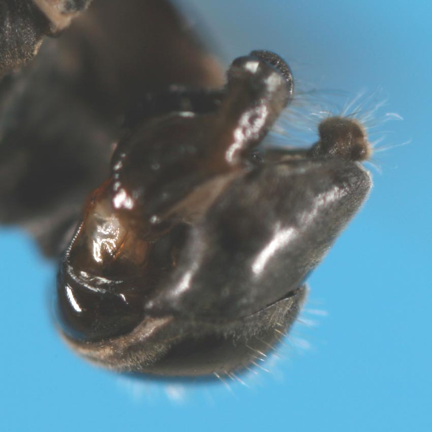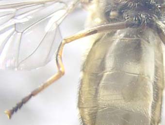 初めまして。楽天(参照URLに記載)とココログ(http://wolffia.cocolog-nifty.com/blog/)で虫を中心にしたブログをやっている者です。 このハエは今年の5月下旬に東京都世田谷区の西にある国分寺崖線(かつて多摩川の作用によって出来た崖)で撮影しましたが、種類が分からず困っております。 北隆館の図鑑ではコンボウナガハリバエが一番近いのですが、かなり異なります。そこで、このサイトを頭から拝見したところ、No.1993のバグリッチ氏が投稿されているCylindromyia pandulataを見付けました。この属を調べてみると、写真の様に、這いつくばった様な格好で留まることが多い様です。 腹部の形などは違いますが、このハエはCylindromyia属でしょうか。 直ぐに逃げられてしまったので、この方向からの写真しかありませんが、宜しく御願いいたします。 |