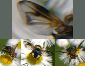 連日質問をされていますが、もうすこし図鑑などで調べるなどされてみては如何でしょうか? 質問内容からすると、ハエとハチとの違いや、ハエ類にどのような仲間があるかなどの基礎知識がほとんど無いとお見受けします。 また、当掲示板での過去ログなども一読することをお勧めします。