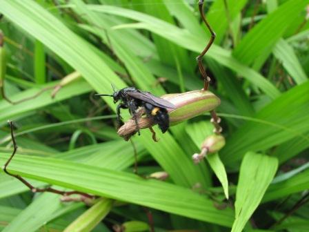 キオビツチバチのメスです。オスは触角が長い。