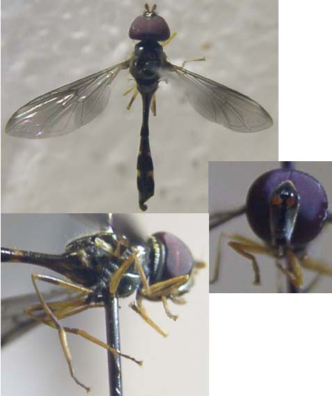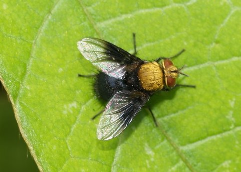 それから、ニクバエ科であった場合、背中に三本線があって腹部に黒い斑紋(モザイク状の模様)があるものには、生態写真では見分けのつかない種が多数存在するため、種まで同定するには標本の確保が不可欠になります。しかも、たいていは同所的に複数の種がいるので、野外で撮影した写真のタイトルに種名を入れたい場合は、撮影した個体そのものを採集して確認しなくてはなりません。犬の糞にハエがたかっていたので3〜4個体採集して確認してみたら、全部違う種だったなんてこともよくある話です。種を見分けるためのポイントは、主に♂の交尾器&腹部第5腹板の形です。♀は特徴がわかりにくく、きちんと同定出来るのは専門家の方のみというのが現状です。もし興味がおありでしたら、双翅目web図鑑のニクバエ科の項をご覧になってみて下さい。 http://furumusi.aez.jp/wiki.cgi?%a5%cb%a5%af%a5%d0%a5%a8%b2%ca まだ画像のある種は少ないのですが、画像有の種を開くと♂の交尾器や第5腹板の画像がみられます。こうした部位の画像をアップしていただけると、この掲示板上でも種の同定のお手伝いが出来ると思います。 |