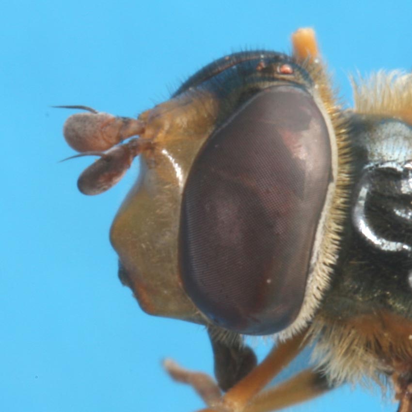 今日、久しぶりに山に出かけ、ハナアブやら雑虫やらを少々採集してきたのですが、シラオビシデムシモドキの集まるような発酵しオレンジ色になった樹液?の周りに、以前このBBSで話題になった種と同じやや大型のハナブトハナアブが集まっており、3♂2♀を採集する事ができました。