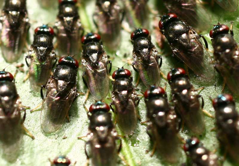 赤坂御用地のキモグリバエを見ると,東京周辺に4種ぐらい分布しているようです. 上宮健吉,2005,赤坂御用地のキモグリバエ科(CiNiiでダウンロード可能)と,以前お送りした日本産のキモグリバエのモノグラフを調べると判ると思います.