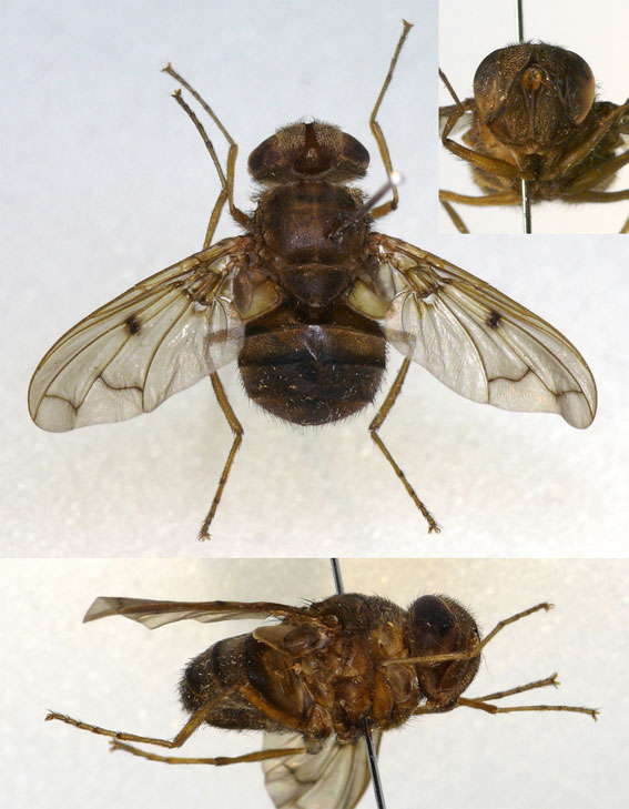とくに,このハエの雌が鳴いている直翅類に直進的に到達できることについての,形態学や生理学的な研究がアメリカでずいぶん進んでいることは,大変参考になりました. なお,デガシラバエ科に分類されることもあるAcomostylidaeクシケバエ科(日本ではまだ採れていないと思います)では,頭部がむやみに大きく(胸部と同様に,ほぼ球形で),顔が著しく膨らんでここの皮膚が薄く,鼓膜状になり(透明で内部の構造が見える),触角刺毛が著しく細かく(ちょっと見ると分岐が無数で細いために全体で薄膜のように見える)分岐しています.これも夜行性のようで,かなりの珍品のようですが,何らかの夜行性昆虫へ寄生するのでしょう.東南アジアあるいは八重山諸島などでの夜間採集の折りには注意したい昆虫です. これまでは夜間採集のおりに飛来するこの仲間を単に採集していただけですが,以前より興味を持って観察することができるでしょう. |
