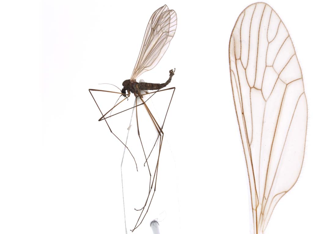 時々腹の先に蛹の脱皮殻をつけたオドリバエなどが採集されることがあります.今回のガガンボダマシも羽化後は同じような状態だったのでしょう. |