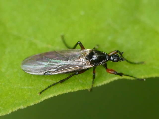 ![]() こんにちは!4月末に、砂浜に打ち上げられて乾きかけた海藻を持ち上げてめくると、錆びたナイフではなく、ハマトビムシ(ヨコエビの類)がピョンピョン散った後に、やや遅れて体長1.2mmのオドリバエらしきものがチョロチョロチョロ〜っと素早く走って逃げていきます。これは何でしょう? 海藻から波の届かない砂漠地帯をはさんで、コウボウムギとハマヒルガオの群落に入るとまた別の「黄色い微小オドリバエ」がいます。 遠目にはElaphropezaに似ていますが、不平士族秋月の乱で有名な甘木朝倉地域や松田聖子チェッカーズ出身地の久留米市で、枯れたススキの株を叩いて採れるエラフィロペザは赤くて光沢があり、頭が小さくて丸い、仮面ライダー555(ファイズ)のような顔つきです。 植物群落の黄色い微小種は陸地側から進出してきた可能性がありますが、海藻下の種は「無翅型も居るのかな?」と思って吸うと、吸虫管の中で羽を伸ばしているようです。ハマトビムシのピョンピョンがひと段落してから逃げ出すものもいるので、砂の中から羽化直後の個体が這い出してきているかもしれません。