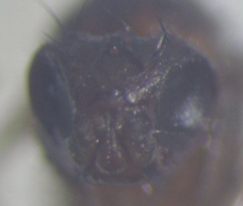 ショウジョウバエ科の同定はかなり細かなところまで見なければならないので、1方向のみの画像からでは難しいというのが現状です。 北海道大学のサイト方で一部の種については検索できるようになっています(日本産ショウジョウバエ(一部))を選択すると画像が出てきます。)ので、これを参照され、どの部分を見なければならないのかをご理解いただき、その部分を撮影していただければある程度の同定はできるかと思います。 http://biokey.museum.hokudai.ac.jp/Classification/Top?lang=ja また発生時期の情報も同定するのに参考になりますので、撮影(採集)された時の日時も添えていただきたく思います。 また目の色はあくまでも目安程度にされると良いと思います。(変異で目が赤くないやつも時々見ますので・・・) 早速のご返答ありがとうございます。ショウジョウバエとわかれば十分なのですが、また撮影してみました。顔部分です。 ちなみに、りんごジュースを開けてから入ったものと思います。発見場所は新潟県、1/15に発見しました。