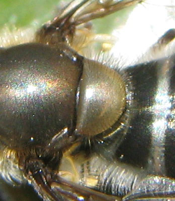 オオクロバエとケブカクロバエ の胸部の画像がありますので、 拡大して比較してみます。