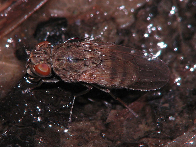 日本で記録のあるSepsis属のうち翅の先の方に黒点があるのは10種類くらいいるはずなのですが、一般的に圧倒的に多いのはヒトテンツヤホソバエで次がオスアカツヤホソバエになると思います。