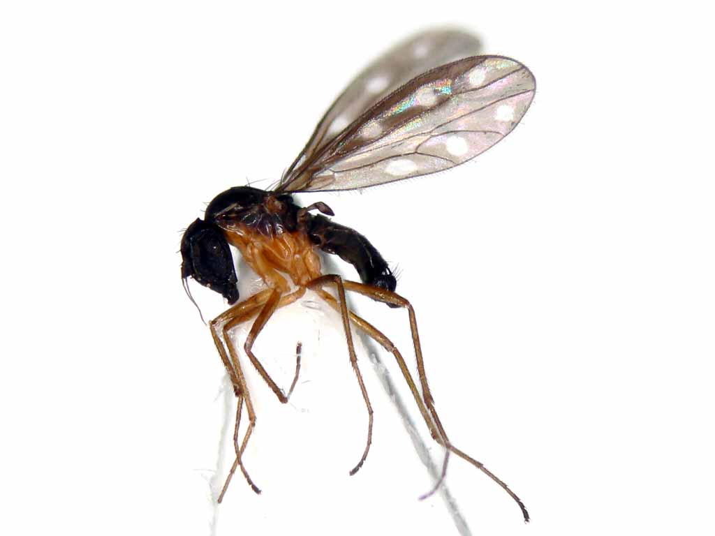 撮影時はアリだと思っていて、PCで見たときに初めてハエだと分かりました。 「アリに擬態している」ということでハエ男さまの「ツヤホソバエ科」にあたり、「Black scavenger fly」で検索して www.cirrusimage.com/fly_black_scavenger_Sepsidae.htm www.biosurvey.ou.edu/okwild/misc/blkscafly.html の画像を見つけました。体色・頭部・翅の紋など、そっくりだと思うのですが、この仲間と考えていいのでしょうか。 1枚偶然に撮った写真だけで申しわけありませんが、よろしくお願いします。