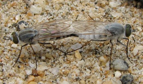 帰り際に少し時間を作って、石狩の海岸方面に行ってちょいとハエ採ってきました。採れたハエは、ゴヘイニクバエ、ハネボシスナニクバエ、ギンガクヤドリニクバエで、なぜかニクバエ亜科のものは採れず???。カンカン照りで暑かったせいかもしれません。 いや〜、北海道にもゴヘイいるんですね。石狩なら、日本海側の砂丘地帯って条件には一応合ってますし。 ただ、採った環境が典型的な砂浜ではなく、人工的に地ならしした後に草が疎生してきたような、どちらかといえば草原チックな場所だったのが、今ひとつ腑に落ちない・・・(謎)。 採集記録 石狩市 2007年7月1日 ・ゴヘイニクバエ Sarcophila japonica (Rohdendorf,1962) 2♂ ・ハネボシスナニクバエ Phylloteles formosana (Townsend,1933) 5♂ ・ギンガクヤドリニクバエ Metopia argyrocephala (Meigen,1824) 1♂