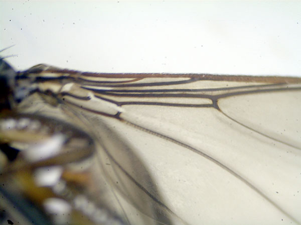 日本産Acanthonevrini族は翅斑紋が似てるのが多く、種の同定は胸部の紋を見たほうがわかりやすいとされています。