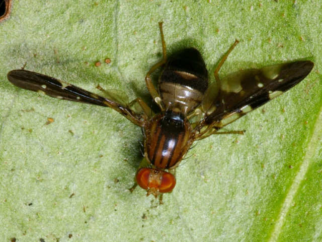 タテジマハマダラミバエ Lenitovena pteropleuralisだと思います。