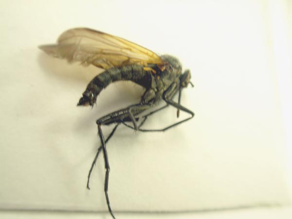 今日は琵琶湖バレイで洞の中から採ったガガンボが羽化しました。ガガンボにしてはかなりモモブトでマッチョなベッコウハナアブでした。 |