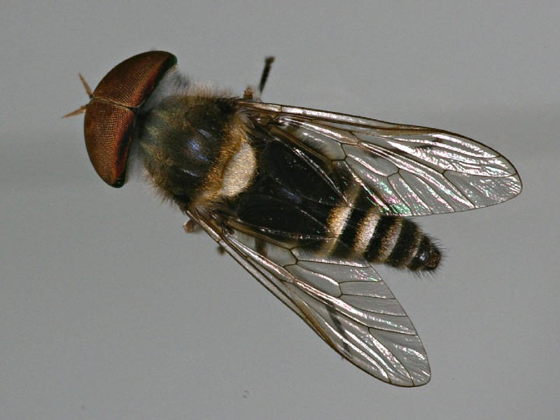 一般的なハエやアブは♂は複眼の間がくっく傾向があり、メスははっきりと離れる傾向があります。