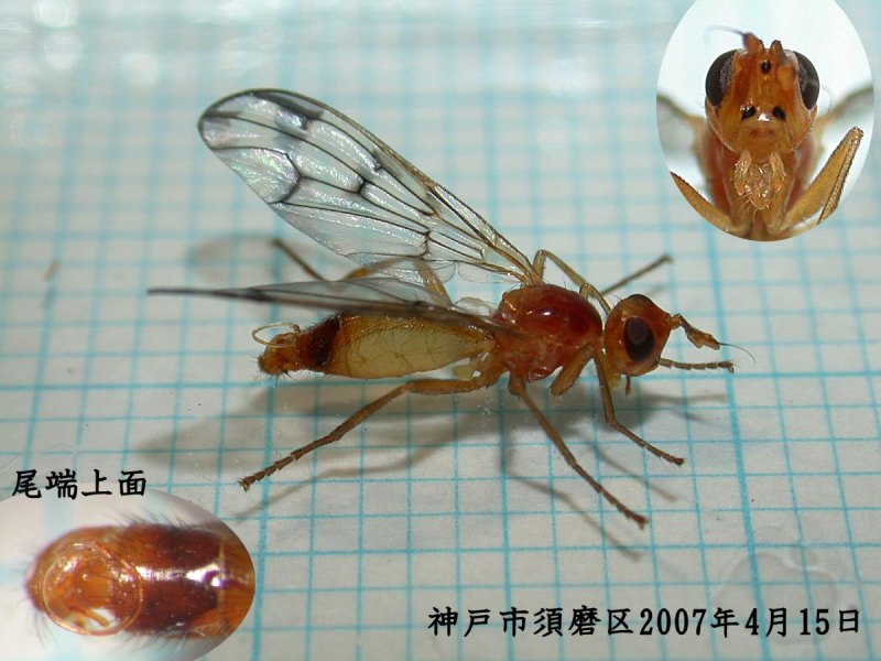 ハエの仲間の同定が難しいことを理解できました。 つい、目にすると撮影し、後で、頭を痛めています。せめて、○○科とか、○○亜科の仲間まで解ればと思っています。 このミバエの仲間は、「多分ハルササハマダラミバエかもしれない」と紹介させていただきます。 有難うございました。 |