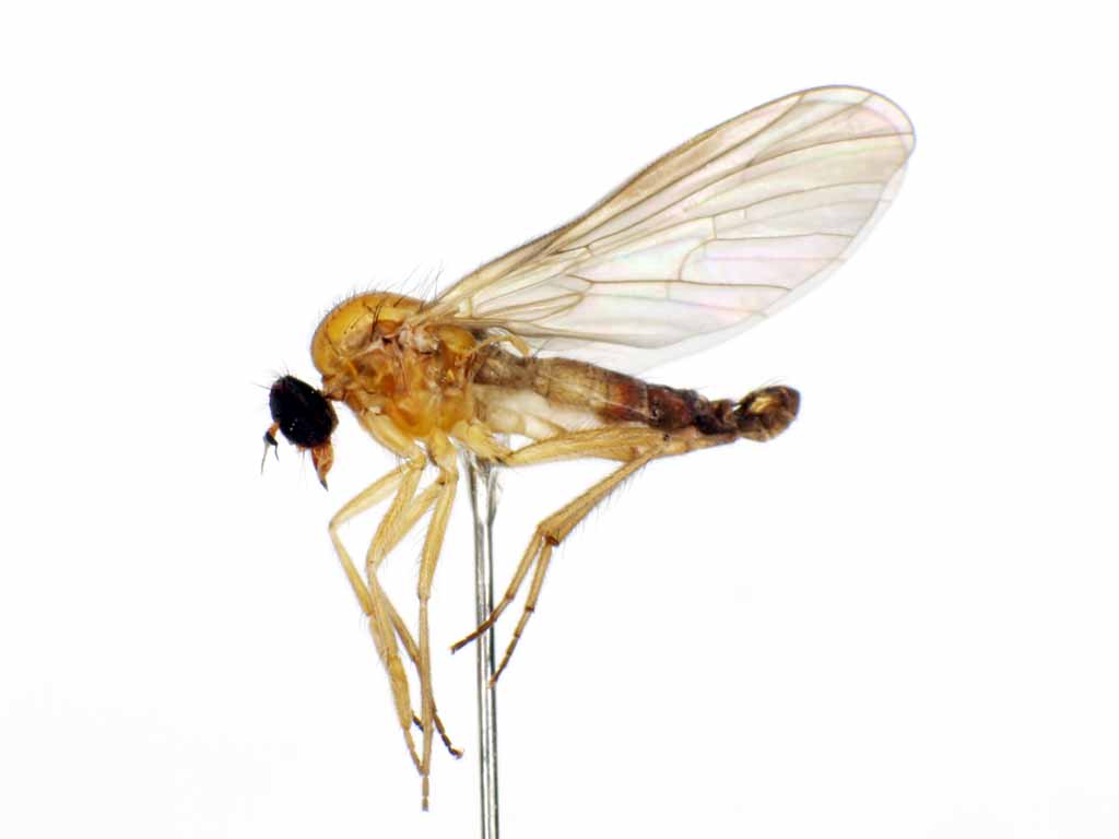 モイワエゾカは北海道では札幌周辺を含めて各地にかなり普通な種ですが,なぜか本州からは記録されていません.しかも,出典が不明なのですが,台湾にも分布することになっています.下北半島あたりには棲息していないのでしょうか.なお,この科Pachyneuridaeにはもう1種未記載種が愛知県の山地に棲息しています.メス1頭しか材料がありませんが,どなたかお持ちではないでしょうか.翅脈は同じですが,モイワに比べてはねは一様に淡黄褐色で,♀の腹端はモイワのように太くなくて,細く尖っています.これは沿海州にいる第二の既知種であるPachyneura oculataとは別です.