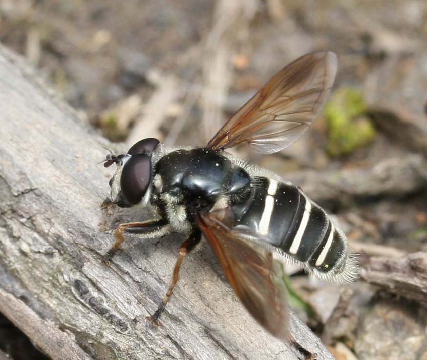 私もこの写真の個体とほとんど同一の標本(北海道北部兜沼産)をもっています.これはフンバエ科のCordilura属Cordilura亜属の種と同定できますが,触角第3節がやや長いのでPhrosia属の可能性も残ります.