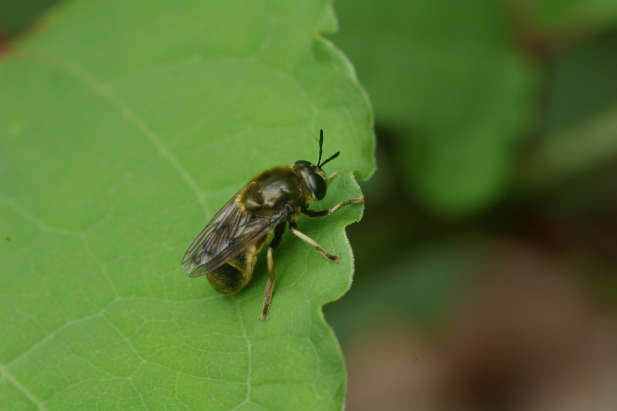 やはり後腿節がかなり太いからコシアキモモブトなんですね。腹部第二背板にうっすら白い毛が生えてます。朝から一本のうつぎで粘ったのですが、これは1匹しか来ませんでした。標本が出来たら写真にとって乗せるのでまた見てください。よろしくお願いします。 |