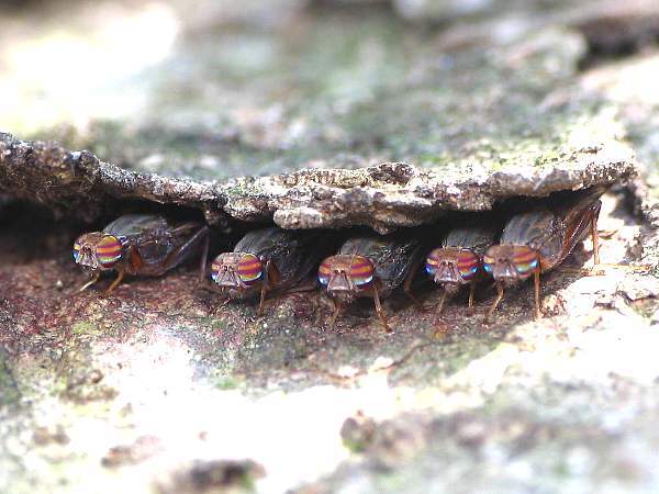 並んだ方の画像は、可愛くてすばらしい写真ですね。 この時期に撮られたというのが、また、すごいです。 写真の翅の模様だけから見ると、ムラクモハマダラミバエに良く似て見えます。 http://homepage1.nifty.com/tago-ke2/moyou-hae/kobetu/murakumohamadara-m.htm 成虫越冬のミバエは多いようですが、この子もそうなんですね。 ではまた。