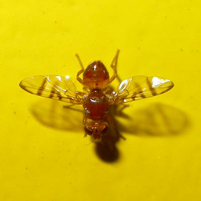 I think maybe 1 and 2 are the same species. I made the picture at the very same location, though Image 1 is from 2oo4 and Image 2 is from 2oo5. The two images are very similar, except the black markings on the wings are much stronger on the fly shown on Image 1. Maybe it is a gender difference, or individual variation. |