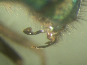 S. sinuataは、北欧にも分布しているので、Pape(1987)の、"The Sarcophagidae (Diptera) of Fennoscandia and Denmark"にも交尾器の図とともに記載されています。雌雄ともに中腿節にハエ男さんの大好きな金色の毛が生えているので容易に同定できるとか。糞や死体にも来るけど、繁殖はバッタやガといった他の昆虫の捕食寄生者で、飛翔中のバッタに雌が飛びかかって幼虫を産みつけるところが観察されているそうです。