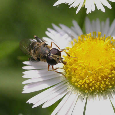 モモブトチビハナアブの♀なのですね。 最近、外国の方の投稿が増えて、(ありがたいことです・が) びびりまくってるワシなのでした。 やっぱし、はなあぶ怖い・・??