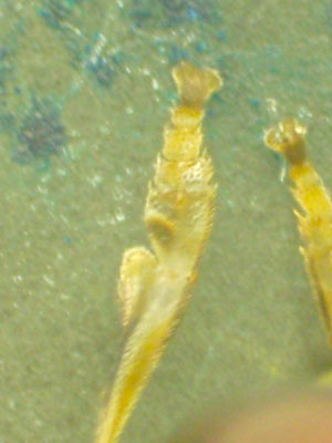 P. urakawensis is quite similer to P. albimanus. Look at the picture of No.1227, please. We can distinguish the former from the latter by the characteristics of frontal leg. The antero-outer corner of tibia is round in the former and sharp in the latter. The basitarsus is the broadest at the center in the former and at the anterior margin in the latter. Sincerely yours,