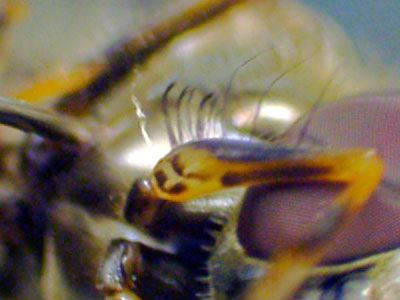 ご教示ありがとうございます。 はなあぶ の記事、拝読しておりました。これに同定の手引きがあれば・・・とまさに思っていたところです。 連載は、本当にうれしいです。 画像の2種の小楯板を確認しました。 2対の剛毛の間のやや長い毛は、マダラと思われる方は、3本、ヤマトと思われる方は2本、確認できました。 マダラは腿節の黄褐色のリングがあることから、間違いないのでは!と思いますが、ヤマトは、長い毛2本でよいかどうか、ちょっと不安です。 いかがなものでしょうか?