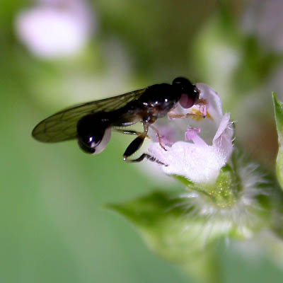 ハチモドキハナアブ類かと思いましたが、翅脈はメバエですね・・ただ、これだけ翅が黒いのって何になるんだろう?