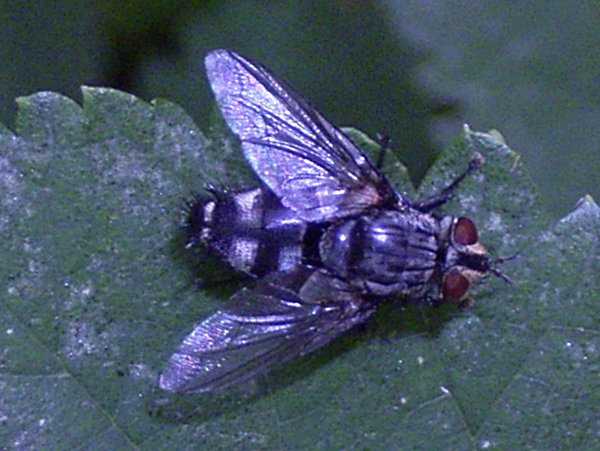 771の画像も多分ヤドリバエ科のハエでしょう。クロバエ科のケブカクロバエやオオクロバエは鈍いながらも青い金属色があります。画像の種はしっかり腹部に紋がありますので・・・・雰囲気的にもニクバエでもないですし・・