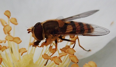 お世話になっております。5月18日に、さいたま市中央区の公園(バラ園として有名)の白いバラにとまっていたハナアブです。 Yoshiaki SAKAI氏のHP yohbo.main.jp の「マガイヒラタアブ Syrphus dubius」などを参考に、マガイヒラタアブと当たりをつけました。 合っているかどうかご教示願います。 また、学名の種小名はdubiusで正しいのかが不安です。 よろしくお願いします。