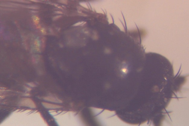 ヤドリバエに挑戦,頑張りましたね. 残念ながらこれはSturmia 属ではないです. reclinate upper orbital bristle の2対のうち,前のものが後と同じ長さがあります. また,小盾板亜端剛毛の立ち位置の幅(この個体は左右で少しずれているようです)は広くなく,基剛毛までの距離と同じくらいです. 旧北区のマニュアルでは511番を通った後,521でors の判断をしたのではないかと思います. そのあたりから再挑戦してみてはいかがでしょうか. (おそらく文献上ではI属のp種あたりにたどり着くのではないかと思いますが,合っているかどうか,全形で判断できるのかどうかはあまり自身がありません.)