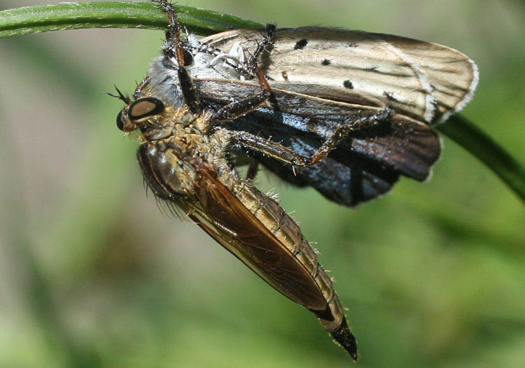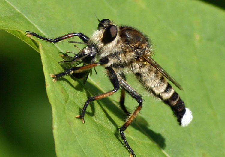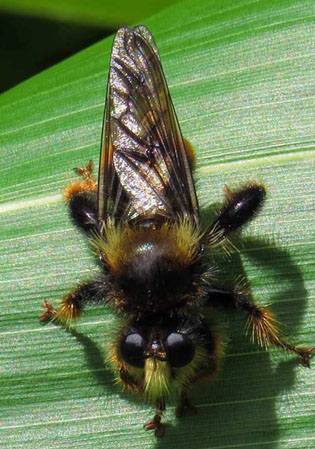 探してみたのですが、翅脈がはっきり写っている写真は未撮影でした。とりあえずは、ムシヒキアブ科の一種としておき、後日、詳しく調べてみようと思います。 ありがとうございました。 |
