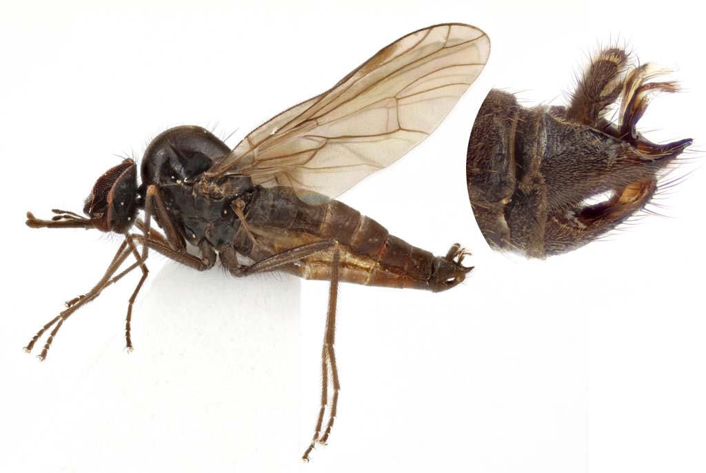 ケバエ類,特にBibio属は一部の種を除いて脚の棘を見ないと区別できません.過去の記事を見てください. なお,投稿に際しては撮影時期と場所,体長を明記してください |