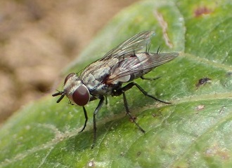 モモグロオオイエバエ Muscina angustifrons だと思います. 幼虫飼育は面白いですね.