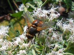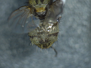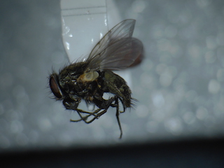 おはようございます. ヤドリニクバエ類の投稿が続きまして,嬉しいです. そうですね.これもヤドリニクバエ亜科と思います.おそらくMetopia属の1種の♀と思いますが,写真からですと種の確定まではむずかしい感じです. 標本を確保しておられるようですので,送っていただけますか? 標本を見れば種まで同定できるかもしれません. 送付先は,「はなあぶ」誌No. 42でLispe flavicornisの報告を書いた第一著者ですので,そこに記しております住所までお送り頂ければと思います. よろしくお願い申し上げます。