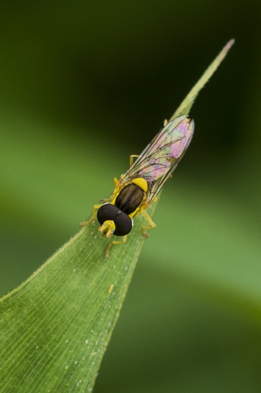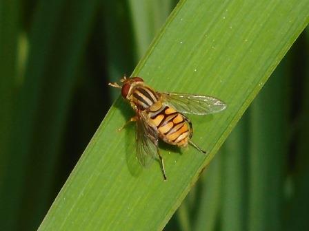 体長からするとSphaerophoria macrogasterホソヒメヒラタアブと思われます.