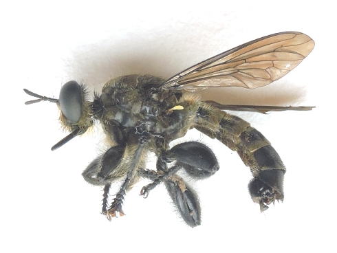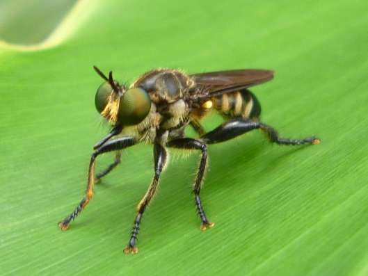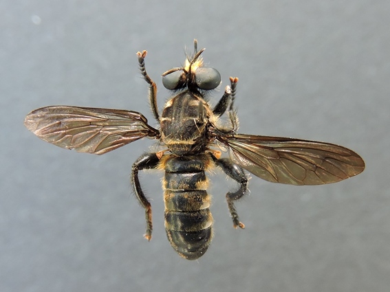 ムシヒキアブ科に詳しい人がネットに出てこないのでイシアブの仲間としかわかりません. ムシヒキアブ科は,ムシヒキアブ図鑑(http://www3.kcn.ne.jp/~tgw/) に出ている程度までしか判明していません. また,南西諸島の場合,東南アジアに分布する種類との関係で,詳しい人でも苦手なようです.