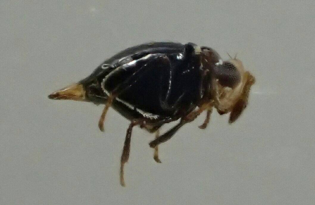 面白そうな虫のようですね。 全長1mmとのこと、添付の画像では詳細が良く分かりません。 背面がまるで甲虫の様に見え、翅が認識できないのですが、 この辺がどうなっているのか気になります。 甲虫の鞘ばねみたいに見えるものが小楯板であればヨロイバエ科かもと思ってしまいますが、いかがでしょう。 南西諸島には(も)未知の双翅目が相当に生息していると思います。