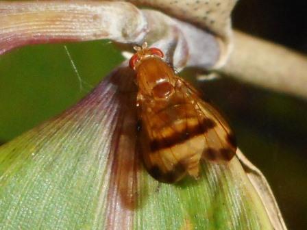 翅の模様がボケていますが,Homoneura hirayamaeヒラヤマシマバエと思われます.