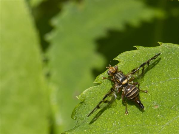 しばらく見ていなかったので返信が遅れてしまいすみません。 自分の撮影技術ではこのサイズの虫で細部まで見える写真を撮るのは難しいです。 pakenya様のおっしゃるヨロイバエの可能性は考えましたが、小楯板が発達しているわけではなく、違うようです。 Acleris様のご指摘の通り触角は肘状になっているようです。双翅と思い込んでいましたが、膜翅の可能性も考慮して再検討します。幸いハチの専門家の方に知り合いがいますので見てもらおうと思います。 |