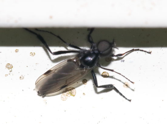 ケバエ科のアシボソケバエの仲間と思われます. 写真だけでは種まではわかりかねます. この仲間について詳しく調べた方のブログです. https://blogs.yahoo.co.jp/fushionotori1/56102568.html 参考にしてください.