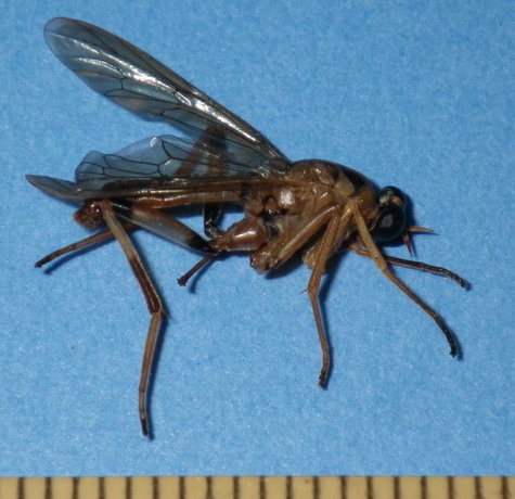Xylomya galloisiアカキアブモドキは標本を見たことがないのですが,写真の個体は翅脈から判断するとアカキアブモドキと同じXylomya属のようです. 後脚基節の色が明るいことが気になりますが,後腿節や胸側部の色彩はXylomya galloisiの記述とかなり一致しています.