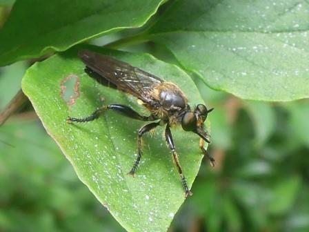イシアブの仲間のようです. 写真だけでは特徴がつかめないので, ムシヒキアブ図鑑 http://www3.kcn.ne.jp/~tgw/m-index2-j.htm で調べてみて下さい.
