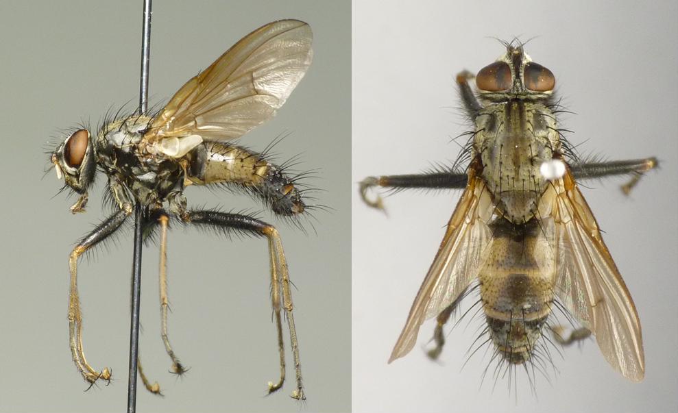 昨年,一昨年に続いて,年末にヤドリイエバエ族Eginiiniの投稿です.以前に,別のが採れたら投稿しますと書きましたが,今年岐阜県と滋賀県で採れました. 写真の個体は,滋賀県米原市甲津原で採れた個体で,採集日は2015年4月26日,体長10.5mmです. |